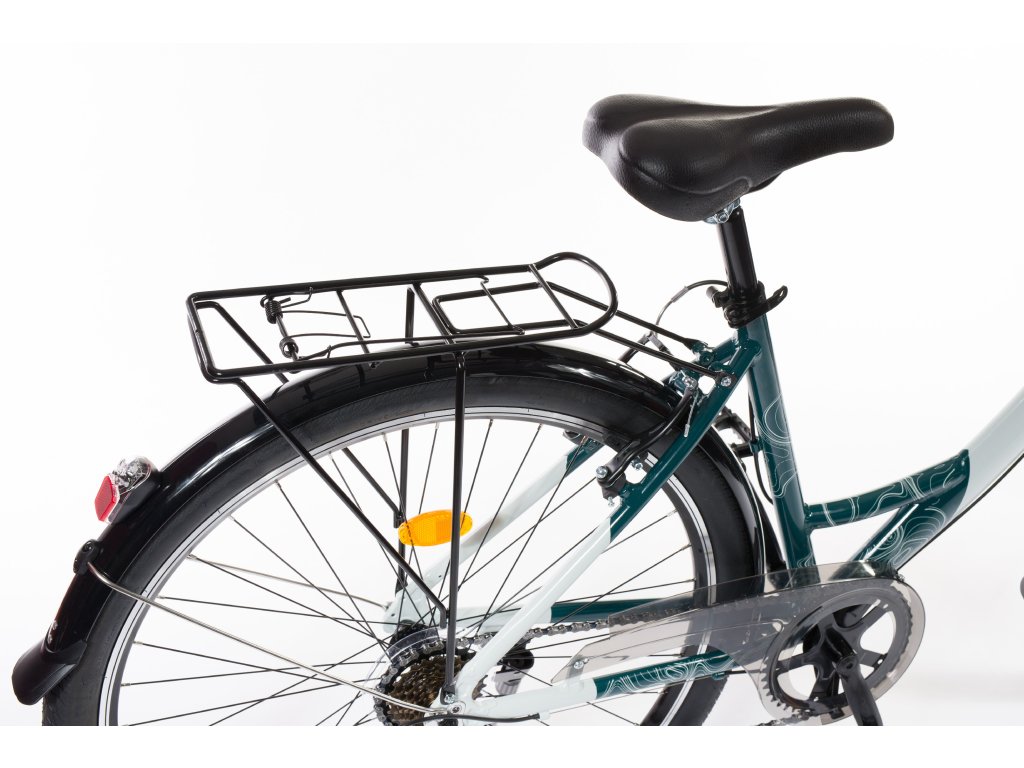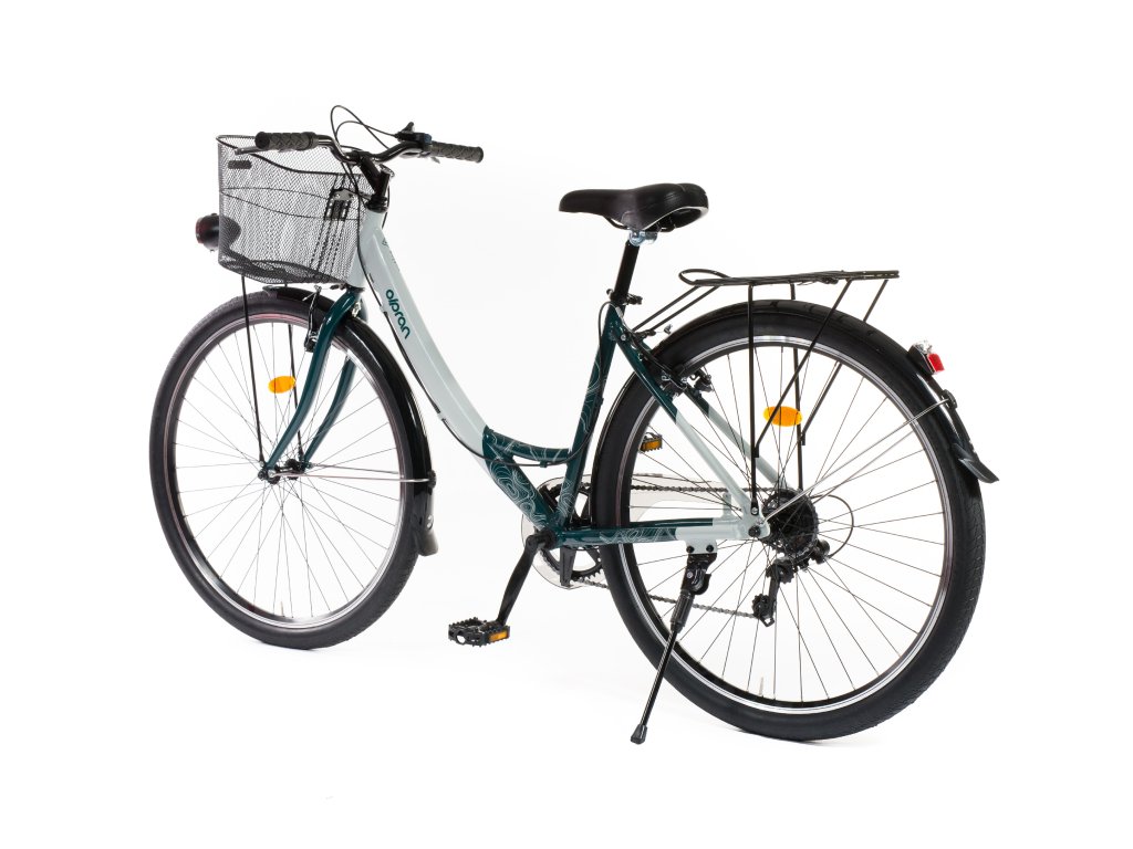 - Součástí kola je stojánek, košík na řídítkách, nosič a přední i zadní světlo