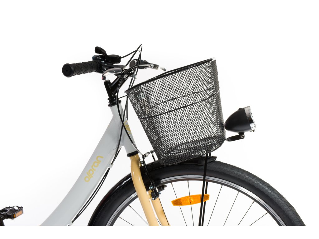 - Súčasťou bicykla je stojan, košík na riadidlách, nosič a predné aj zadné svetlo